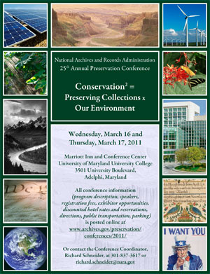 HKG Archives staff was also present at the 25th Annual Preservation Conference of the National Archives and Records Administration in College Park, Maryland Mar 16-17, 2011. The theme of this two-day conference was “Conservation2 = Preserving Collections X Our Environment.” Presentations focused on various strategies and solutions for sustainable, green practices that can be implemented in archives when caring for collection materials. Speakers stressed an interdisciplinary approach and encouraged cooperation and dialogue between archivists, facilities managers, architects and equipment manufacturers. Conference attendees were also very fortunate to be able to tour the preservation and conservation labs at the National Archives at College Park. The Special Media Preservation Lab was especially interesting as this is where videotape and motion picture film reformatting efforts take place. The HKG Archives collection is certainly not as vast as the National Archives, but NARA serves as one of our models and it was great to see that we’re using some of the same equipment (SAMMA Systems) as they are!