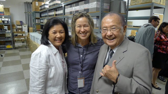 Senator Dan Inouye, Irene Hirano and members of the Senator’s staff visited the Archives on Aug 10 to tour our facility and to see the progress that we’ve made since starting operations in 2010. Sen. Inouye has always been a strong supporter of our moving image preservation efforts and was instrumental in the formation of the archives which honors his longtime aide Henry Ku’ualoha Giugni.